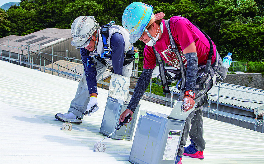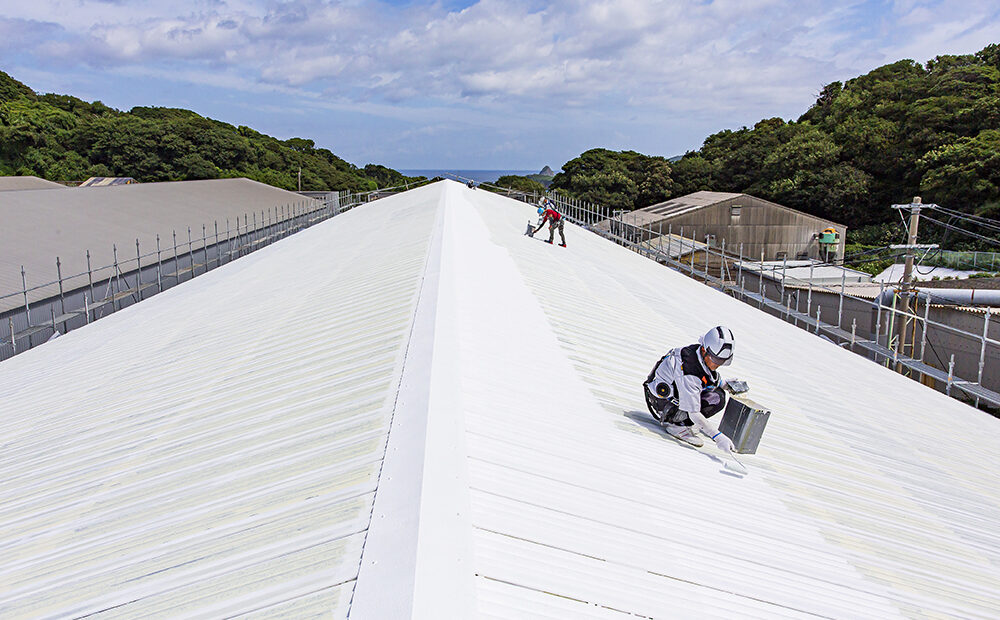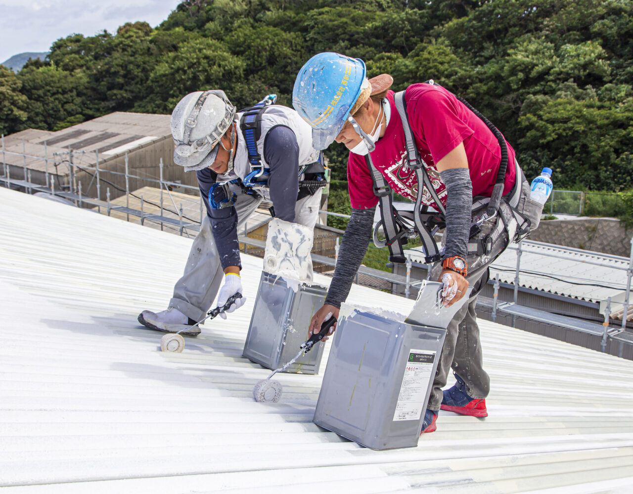夏場の工場内は屋根の輻射熱で室温が上がりやすく、熱中症のリスクが高まります。断熱塗装を施工することで室温上昇を抑え、従業員の安全を守り作業効率の向上にもつながります。