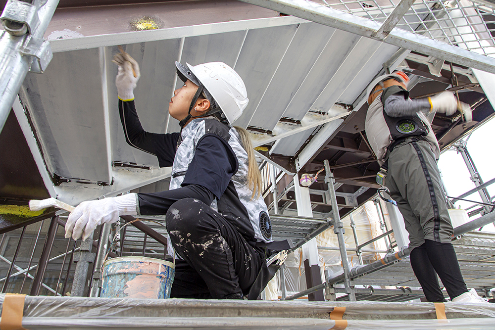 「次はこの仕事に挑戦してみよう」「将来を見据えてマネジメントも経験させておこう」など、社員ひとりひとりのスキルアップに目を向けてくれる会社です。だから毎日が刺激的で飽きない。また塗装の世界はとても奥が深く、10年目の現在でも先輩の達人技に驚かされてばかりです。一緒に切磋琢磨していきましょう。